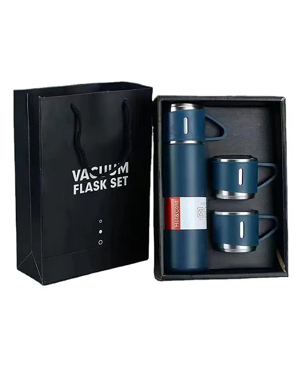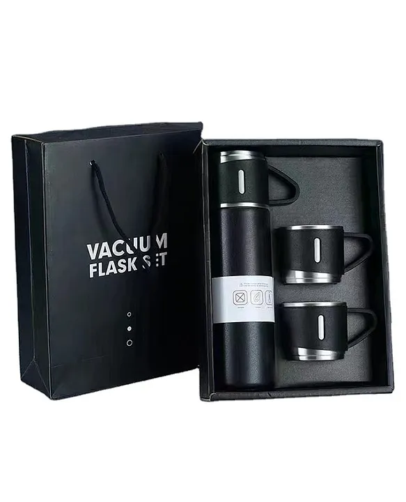 Stainless Steel Vacuum Flask Set with 3 Steel Cups (Set of 3 Pcs) | Black | 500 ml