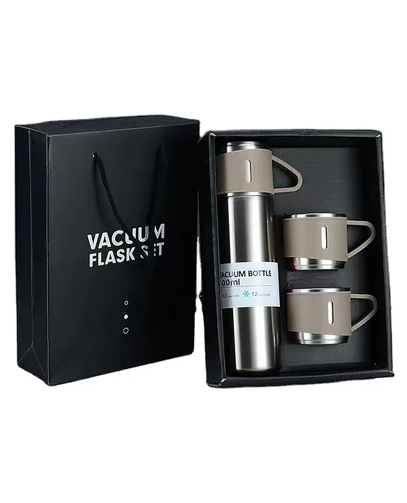 Make every sip memorable—choose the Stainless Steel Vacuum Flask Set with 3 Steel Cups and elevate your beverage experience!