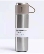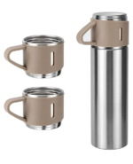 Durable stainless steel vacuum flask set includes a 500ml insulated flask and 3 sleek steel cups, perfect for keeping beverages hot or cold while on the go. Ideal for travel, picnics, or outdoor adventures.