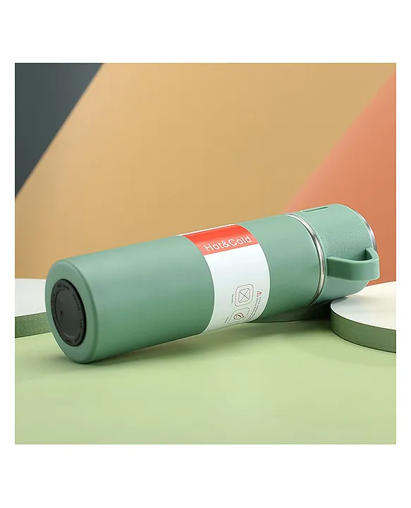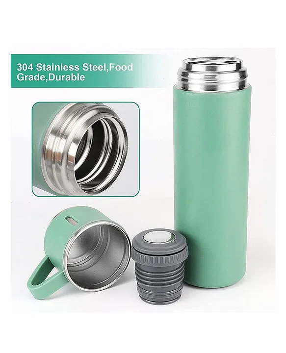 Stainless Steel Vacuum Flask Set with 3 Steel Cups (Set of 3 Pcs) | Light Green | 500 ml