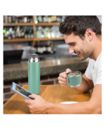 Be the first to review “Stainless Steel Vacuum Flask Set with 3 Steel Cups (Set of 3 Pcs) | Light Green | 500 ml”