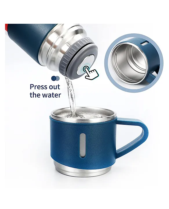 • Flask Size with Cup: 9.4-inch x 2.6-inch; Cup Size: 2.6-inch x 2.3-inch; Capacity: 500ml
